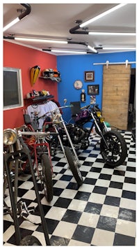 num ambiente respirando Kustom Temos a nossa Oficina de Choppers e Bobbers pra construir as motos mais iradas que existe, e também nossa loja física onde vendemos tudo que você pode imaginar no mundo dos kustomizados.